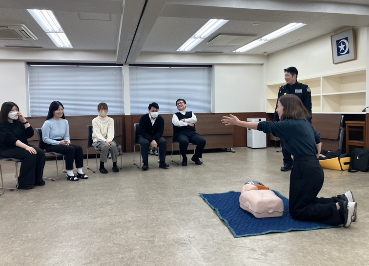 心肺蘇生法の基本やAEDの使用方法について、実技を交えながら学びました。
